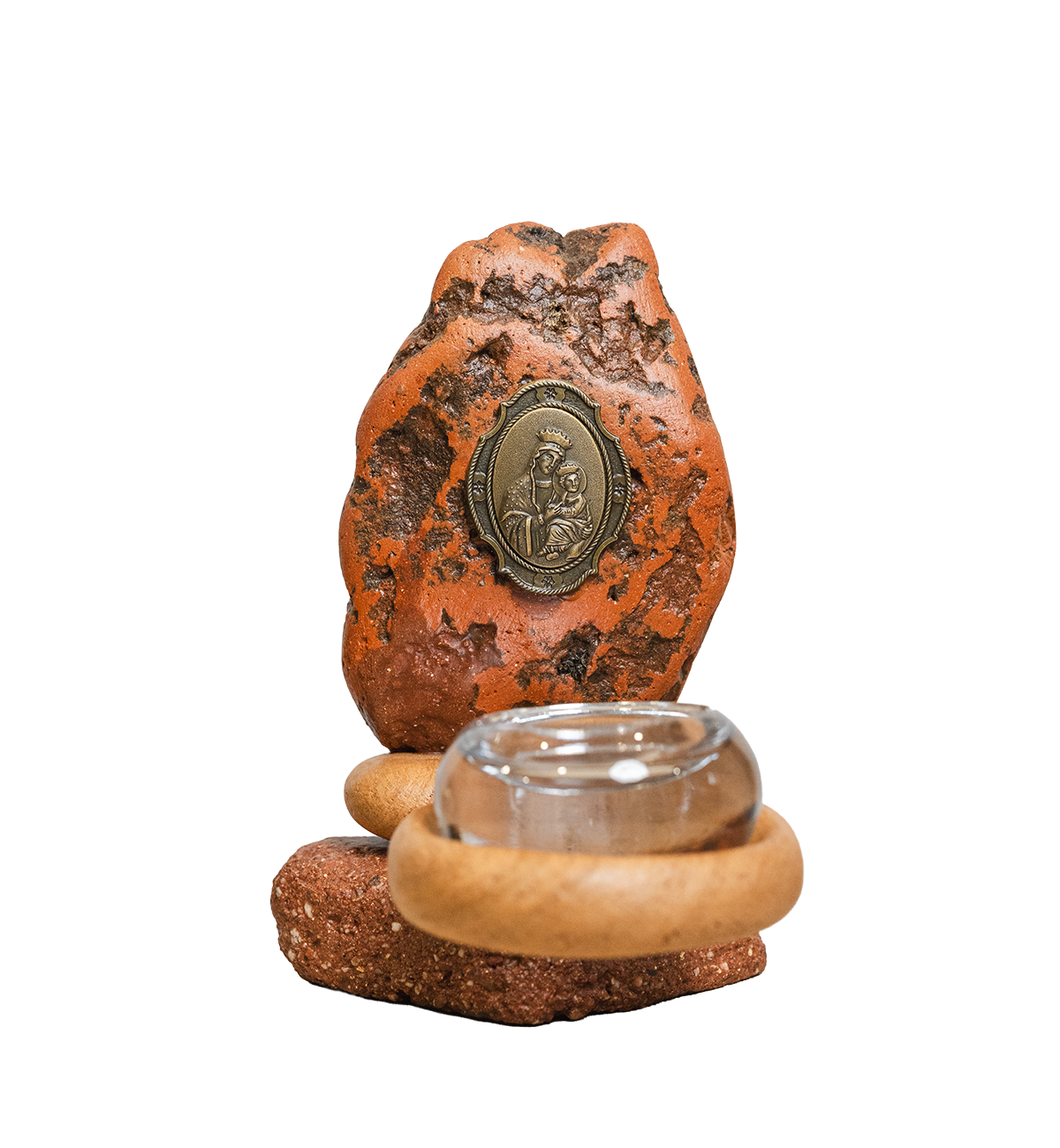 O candelă realizată manual în atelierul de sculptură în lemn de la Mănăstirea Turnu Prahova.